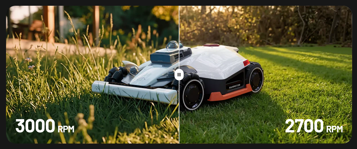 Dva motora sa visokim obrtnim momentom od 165 vati sa diskovima sa 6 noževa rade zajedno sa AI vizijom LUBA 3, koja automatski podešava brzinu i snagu na osnovu gustine trave, obezbeđujući maksimalnu efikasnost košenja i optimalnu potrošnju energije.